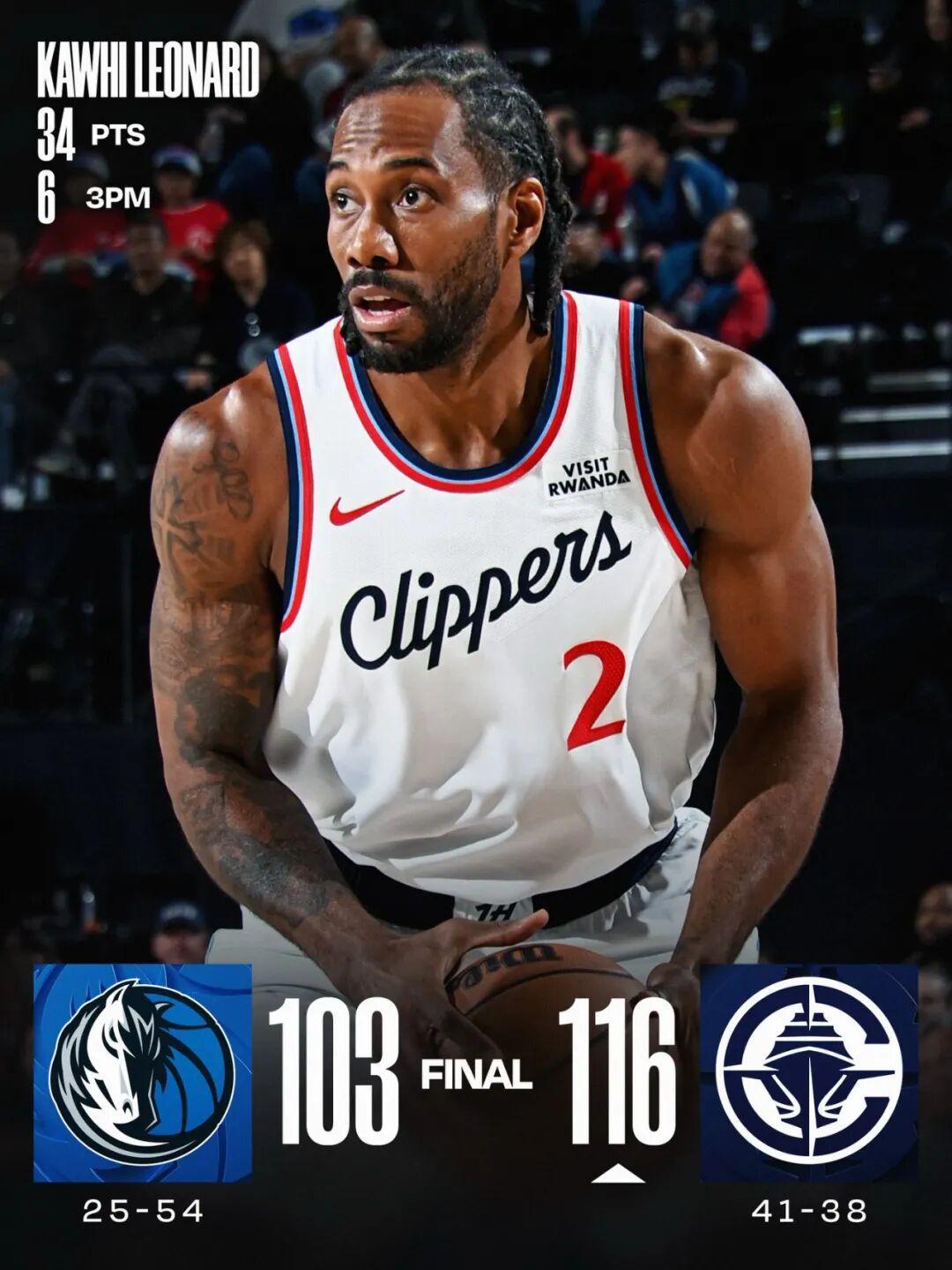 昨日常规赛,一场普通的比赛,快船以116-103击败独行侠。